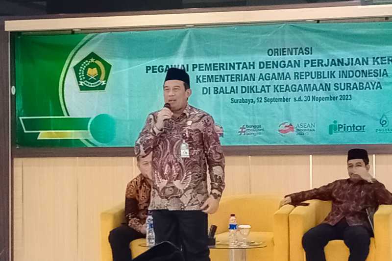 Hal itu disampaikan Husnul Maram saat memberikan materi pembangunan bidang agama kepada peserta orientasi Pegawai Pemerintah dengan Perjanjian Kerja (PPPK) angkatan 66-70 di Gedung Balai Diklat Keagamaan (BDK) Surabaya, Jum’at (27/10/2023).